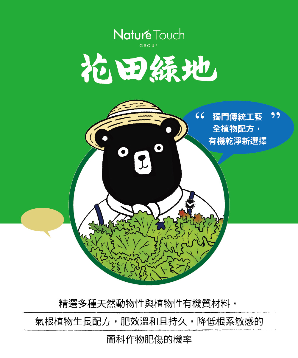 「根據植物栽培的需求,肥師傅精選多種天然動物性與植物性有機質材料,並使用獨門的傳統製肥工藝,而誔生的特製有機質肥料,是有機且乾淨的新選擇。」