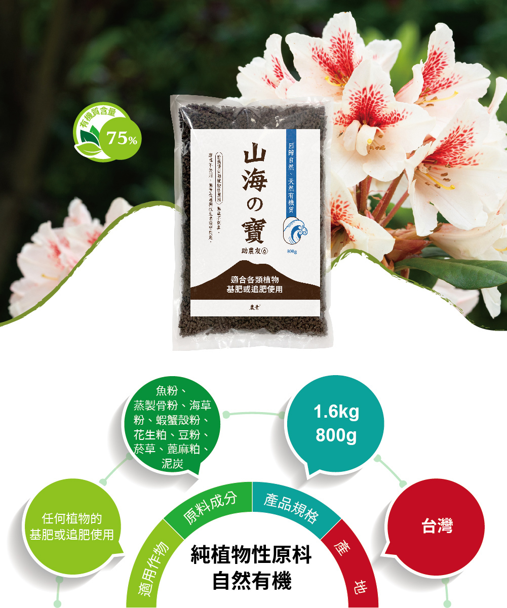 本產品肥效溫和且持久、不易傷根且不刺鼻。