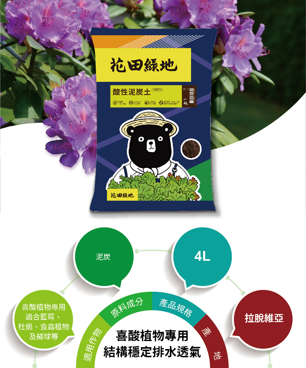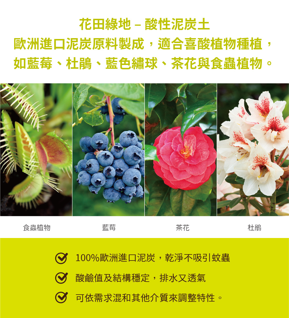 適合藍莓、杜鵑、茶花、食蟲植物等喜酸植物種植