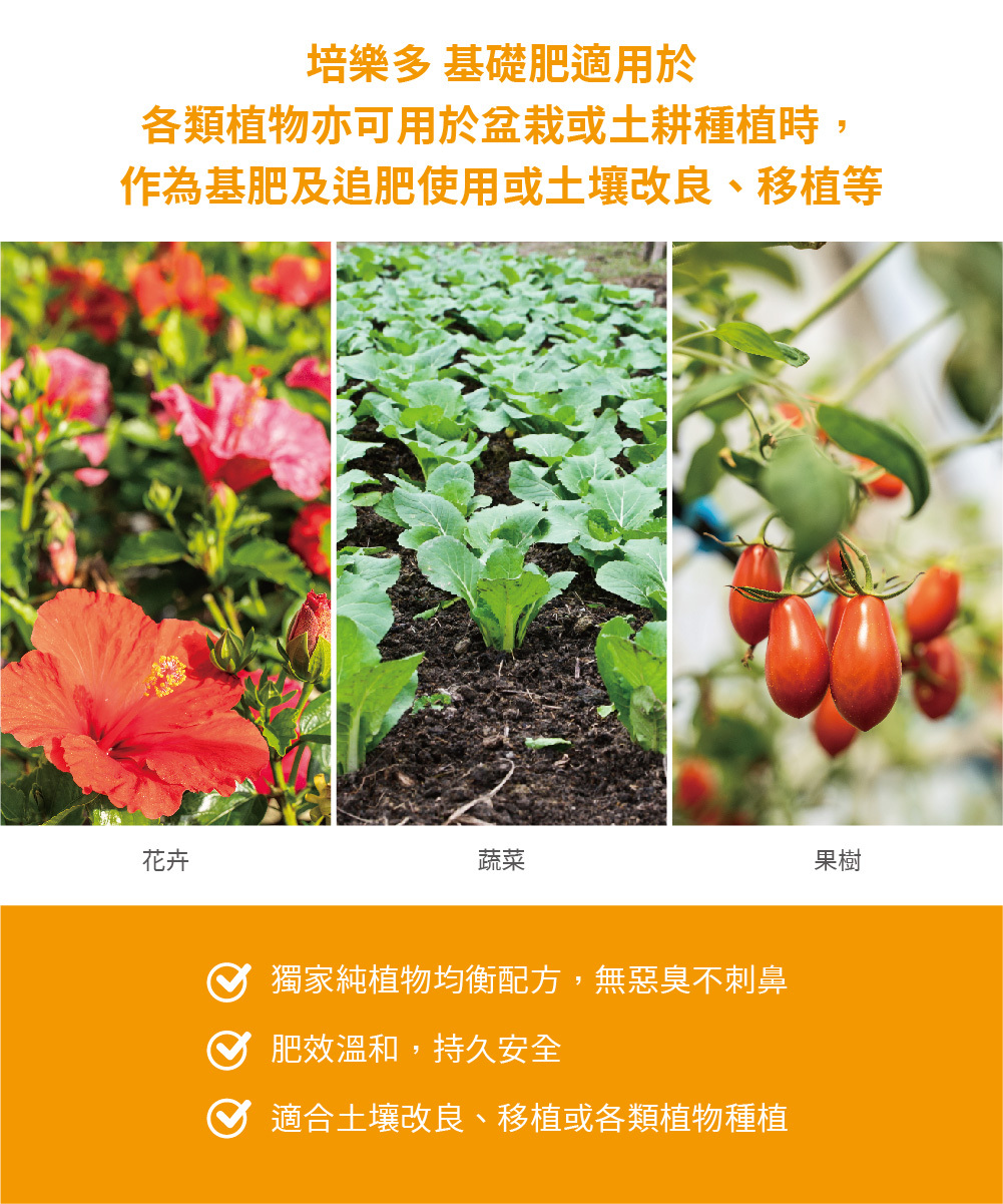 本產品肥效溫和且持久、不易傷根且不刺鼻。