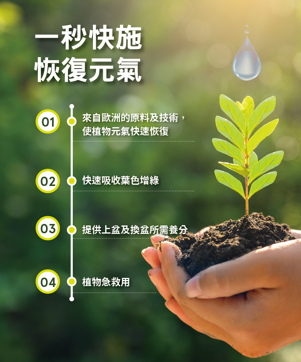 小分子養分讓葉片直接吸收,使植物快速恢復活力。