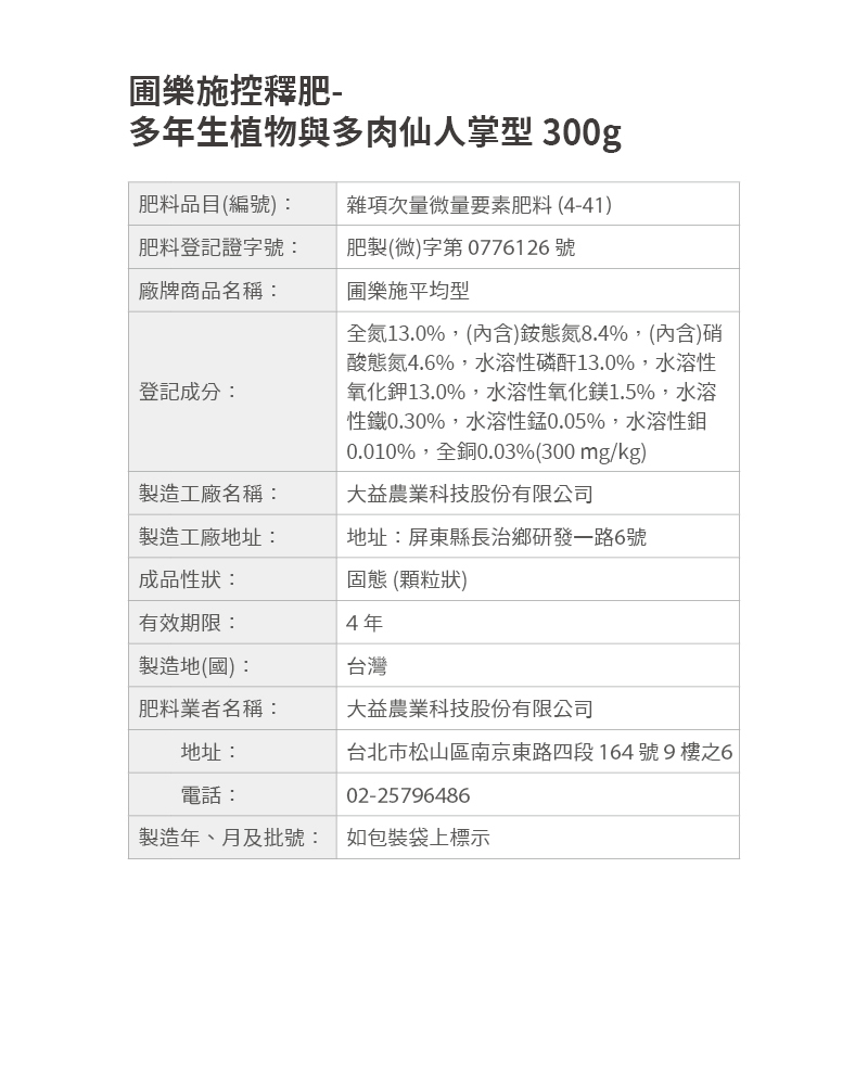 養分持續供應180天。