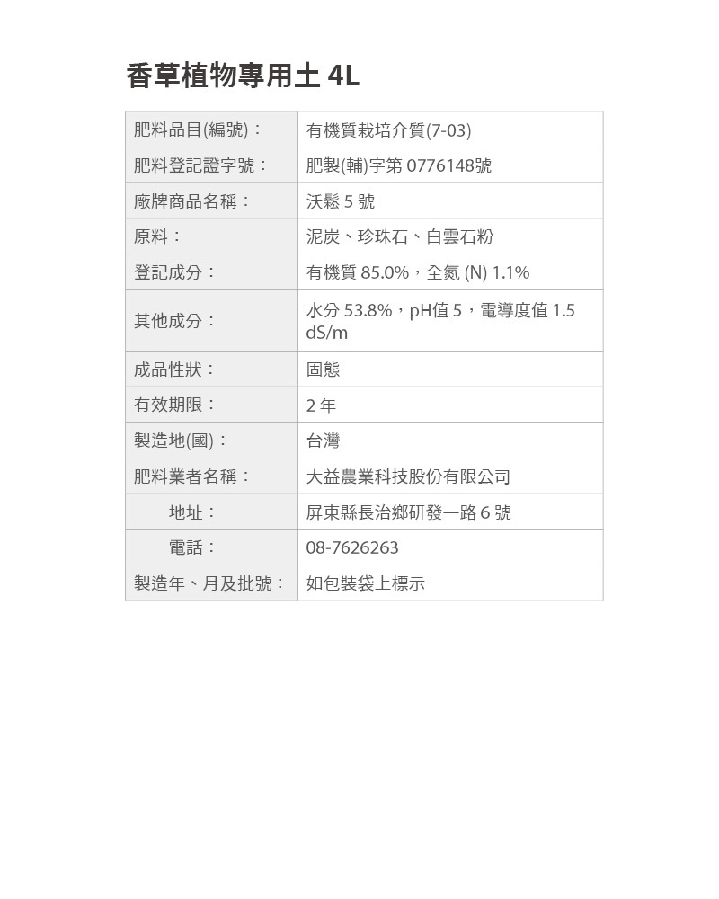 使用來自歐洲高品質白泥炭及德國珍珠岩,適合香草植物及各類植物的生長栽培,排水性好及通氣性佳。