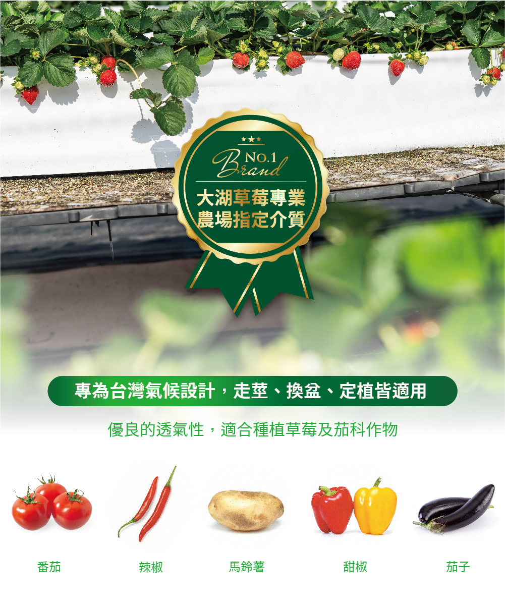 專為台灣氣候設計,其優良的透氣性,非常適合種植草莓。